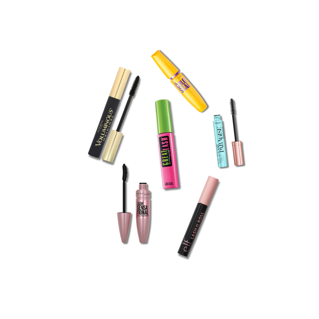Una mezcla increíble de mascara de pestañas marcas y presentaciones van variados y al azar (no se escoge) incluye marcas com, ELF, NYX, L’Oréal, Maybelline y más.